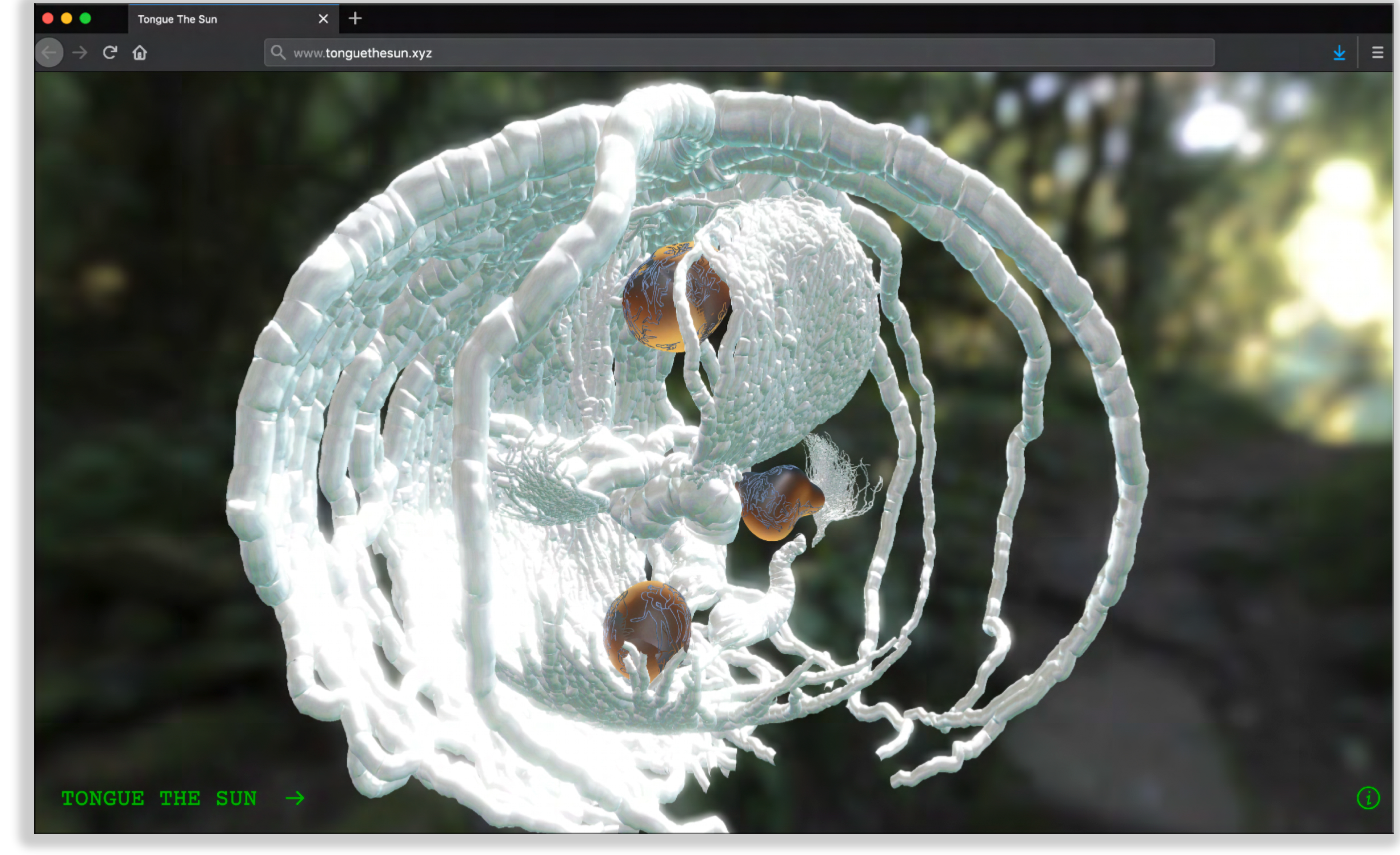 Tongue The Sun draws attention to the materiality of our body’s ecosystem via an online web project comprising an interactive digital sculpture, live avatar essay reading, and NFT set.